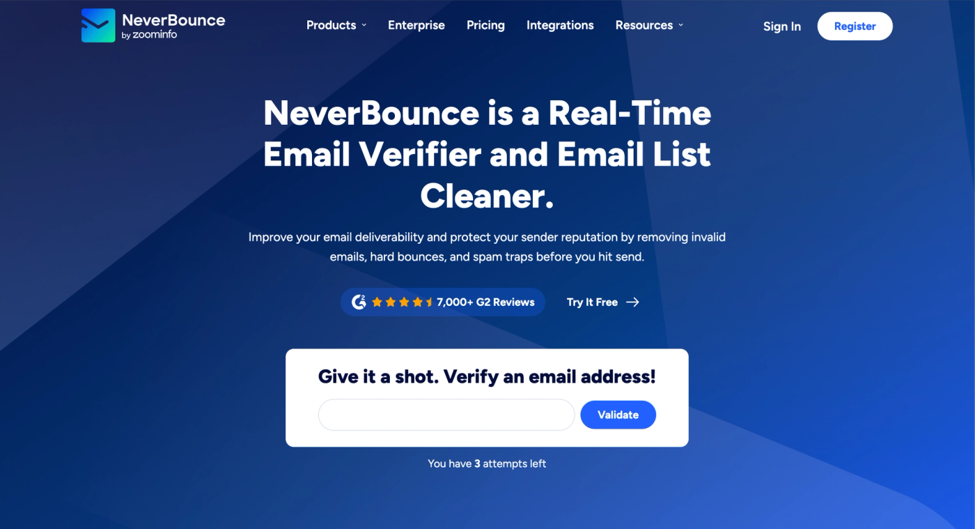 Neverbounce is an enterprise-grade staple known for its "Clean" interface and high accuracy rates, a product built by Zoominfo.